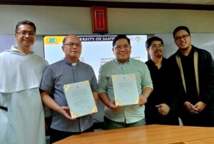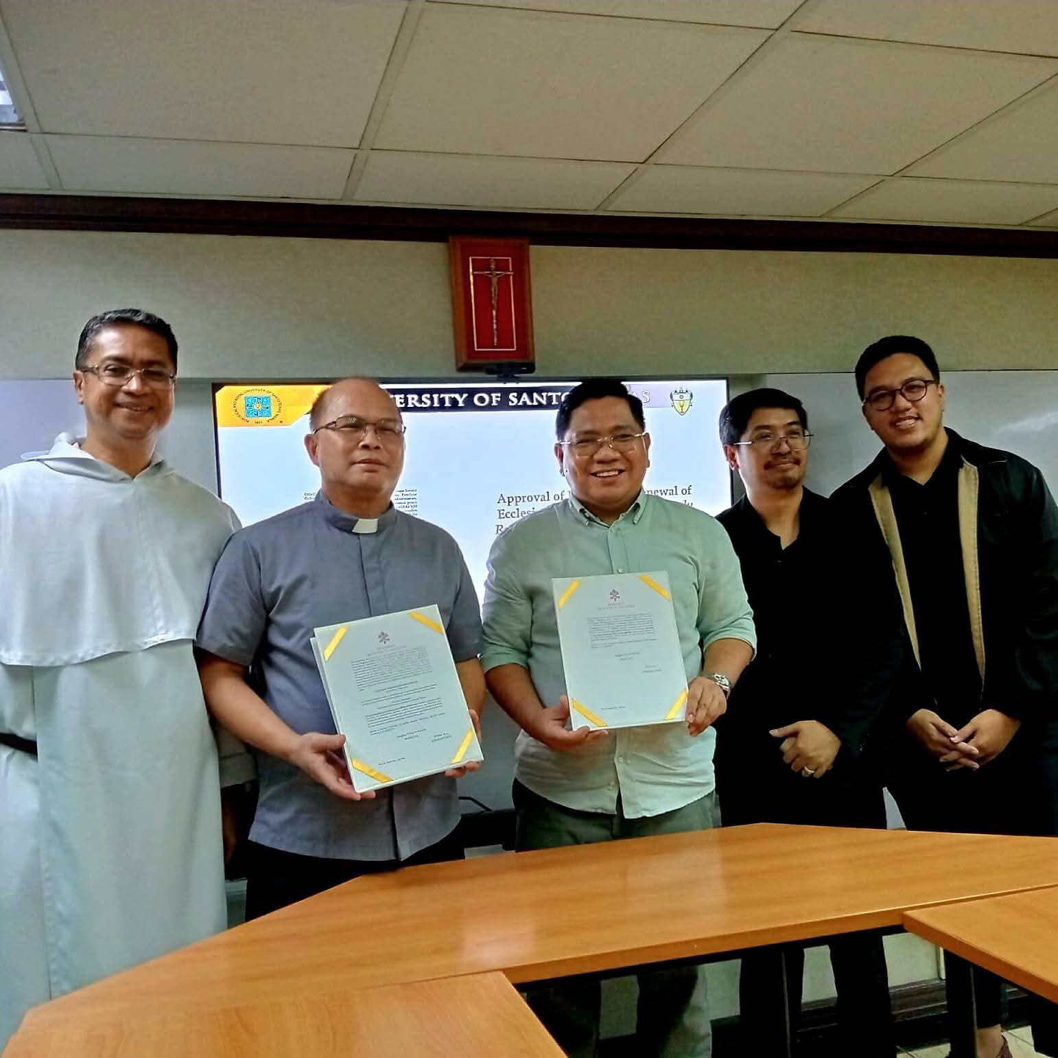 On Nov. 21, UST Faculty of Theology Dean Fr. Jannel Abogado, O.P., gave the official documents formalizing the partnership to Fr. Joey Gonzaga, rector of the Holy Rosary Major Seminary.