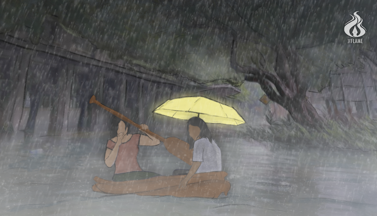 Isla’s umbrella continues to float on the waters, moving further away. Its color, bright and blazing, contrasts the hopeless swamp that surrounds them. Perhaps, this may be the last time they will see yellow ever again. F