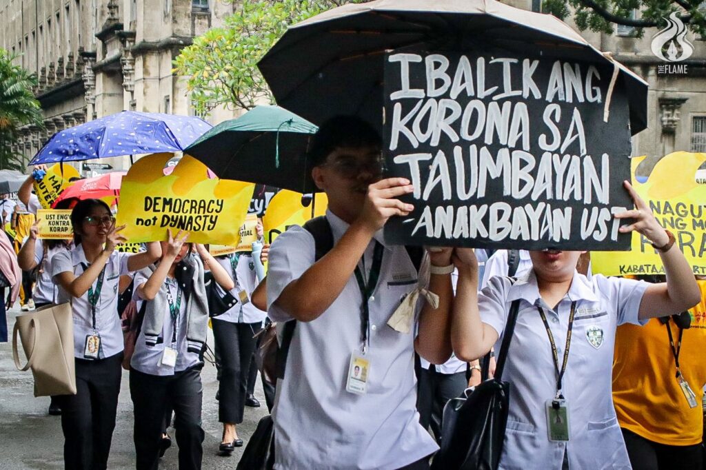 Philosophy freshman Raven Racelis, a member of Kabataan Partylist’s chapter in UST, said Thomasians were influenced by the walkout protests in other universities that encouraged fellow students to be politically aware.