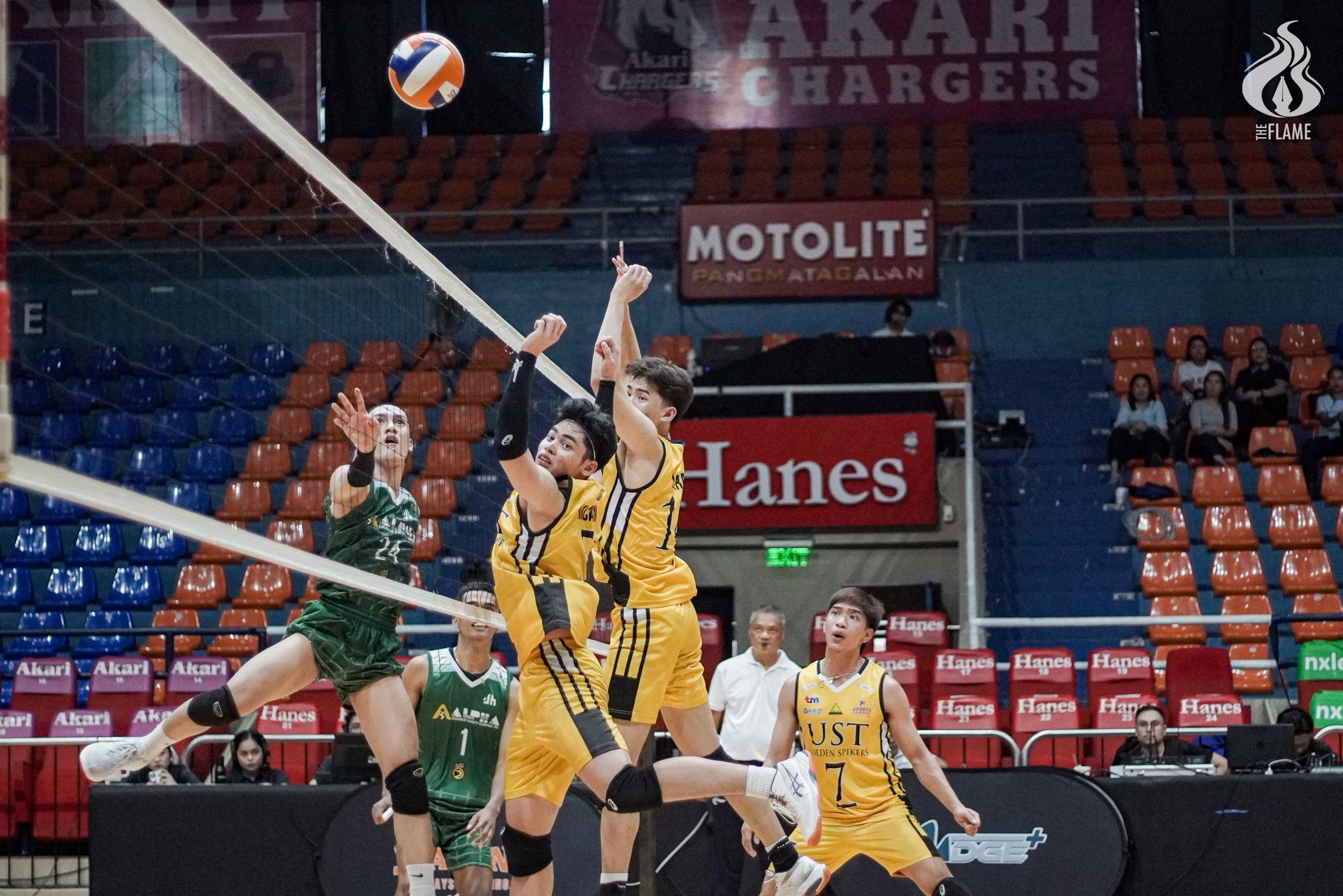 Alpha’s Anima and Bautista snuffed out UST’s rally as San Andres finished the match with an off-the-block hit.