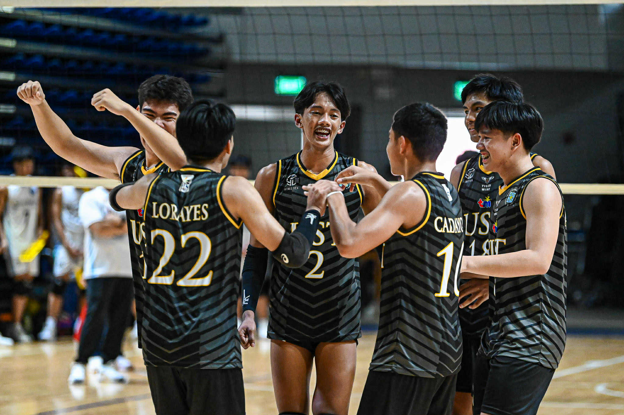 THE UST Junior Golden Spikers secured their first victory of the UAAP Season 88 boys’ volleyball tournament with a 25-19, 27-25, 25-23 sweep of the Adamson Baby Falcons on Sunday, Sept. 28, at the Ateneo Blue Eagle Gym.