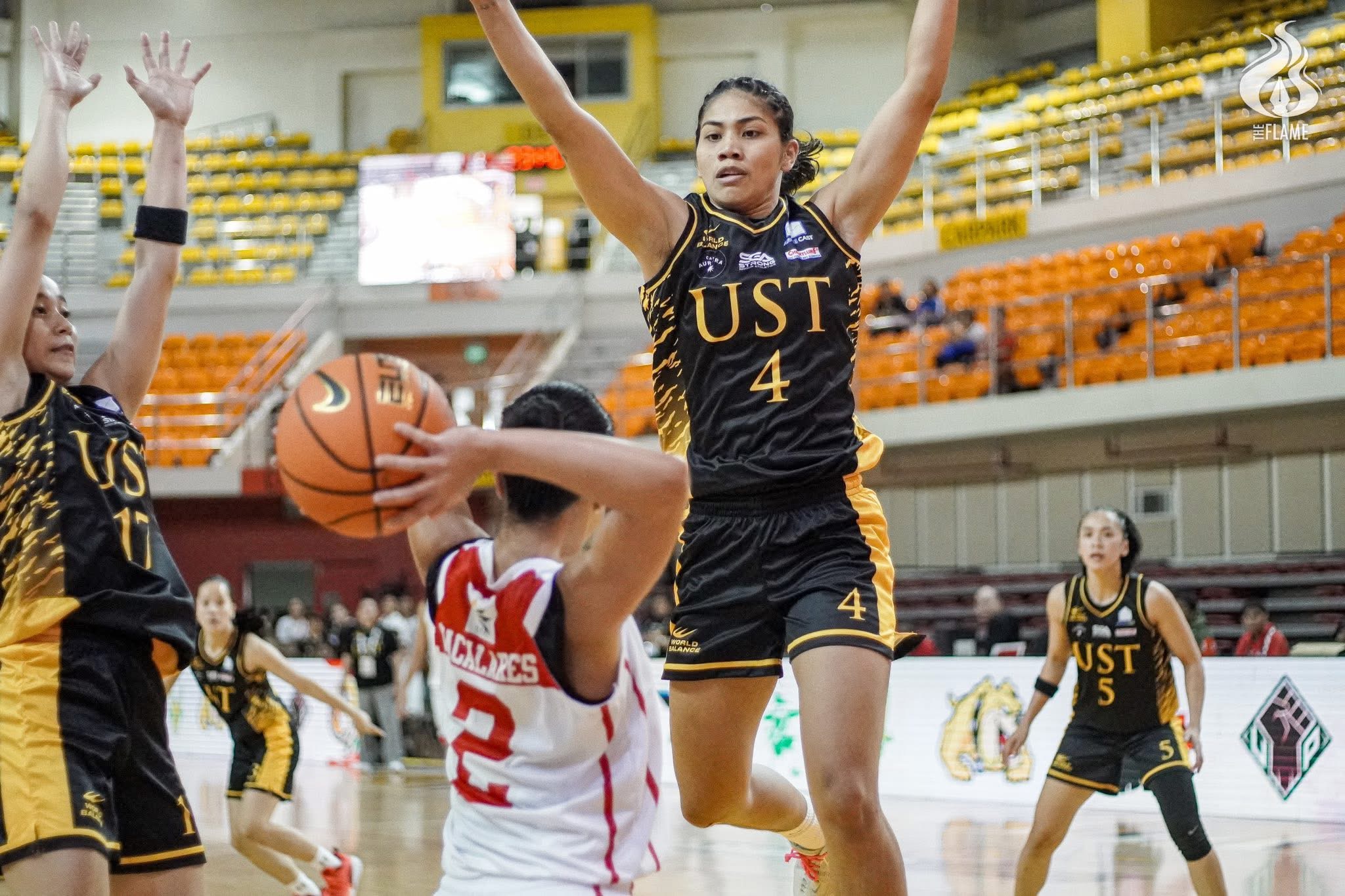 Breana Pineda then punctuated UST’s first half barrage with a rare four-point play to close the first half with her team still on top, 52-20.