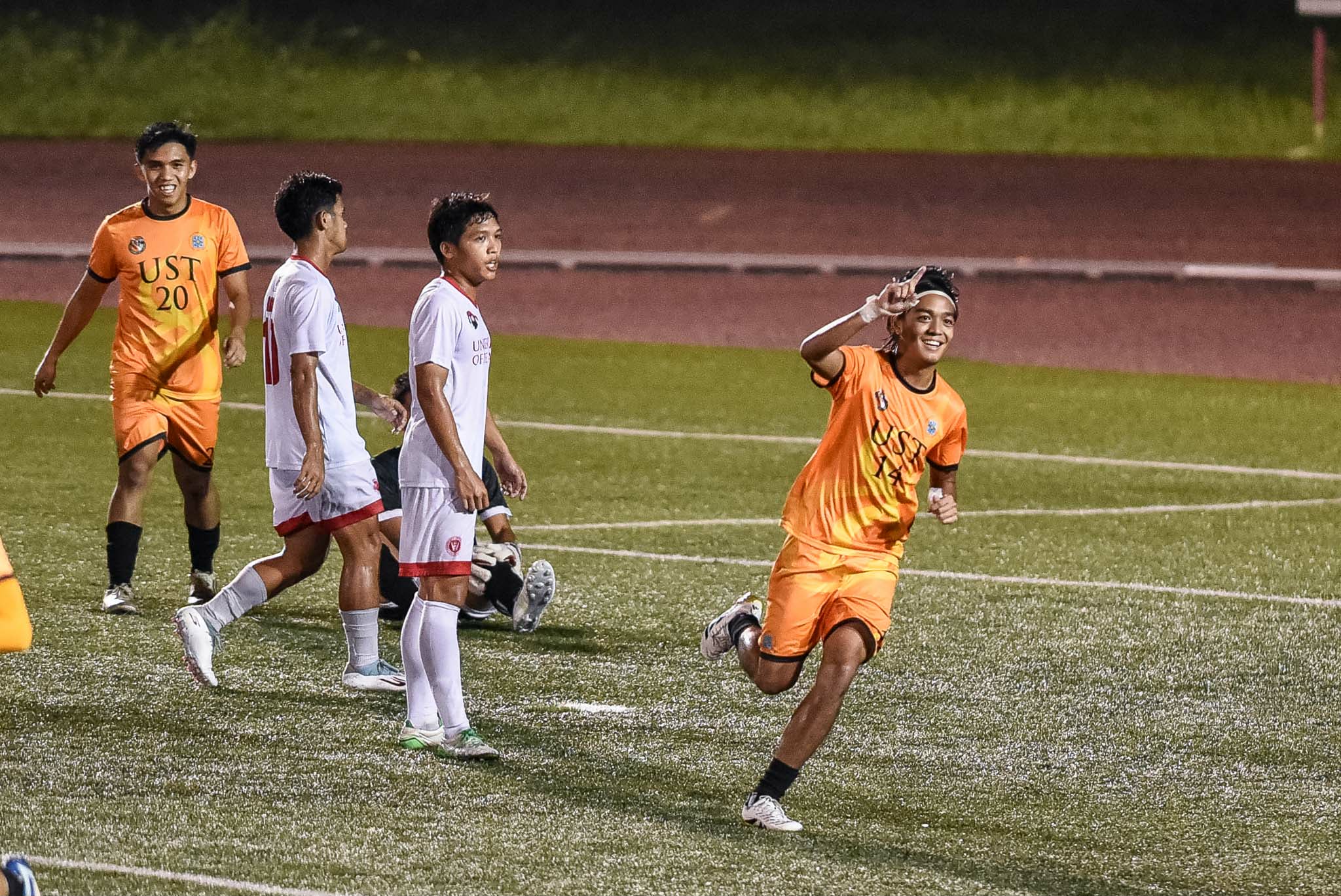 UST wasted no time asserting control, as Mariñas broke through early in the seventh minute, converting a long cross that slipped past UE’s backline to give his side a 1-0 edge.