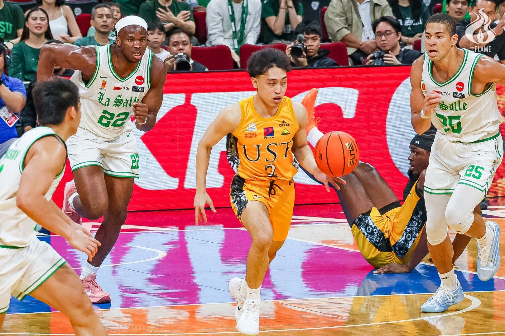 UST struggled early against DLSU’s pesky 2-3 zone, trailing 24-17 after the opening quarter.