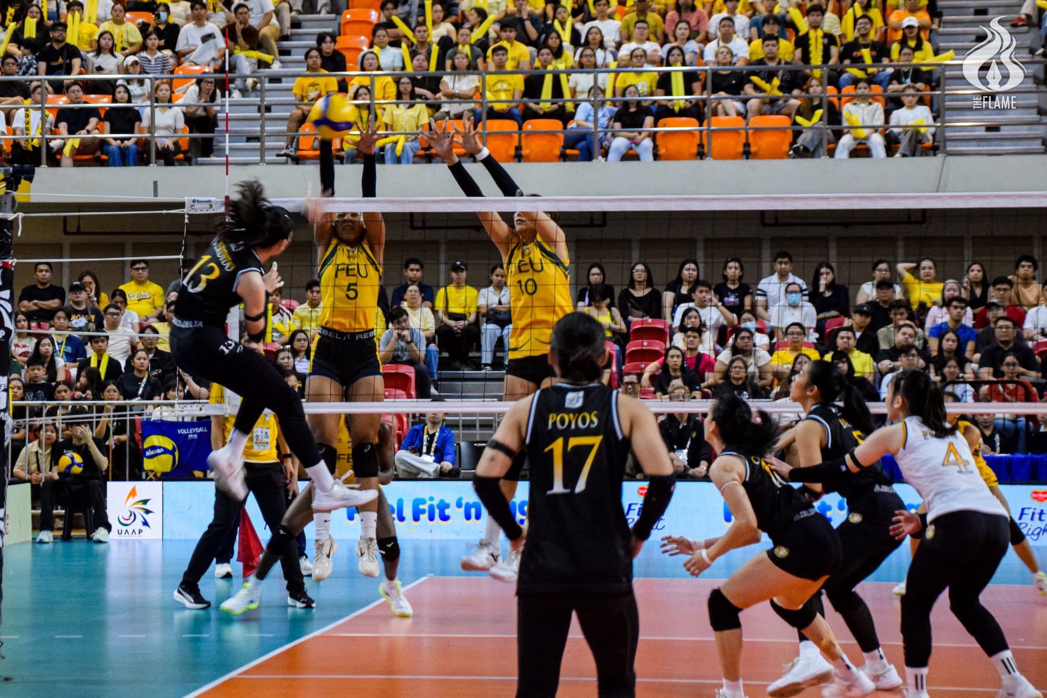 Errors kept the Tamaraws alive late in the set but Jurado and Poyos delivered the finishing touches to go up two sets to none, 25-17.